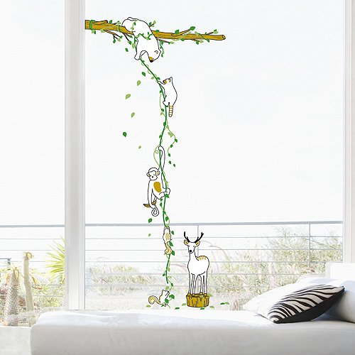Easy Instant Decoration Wall Sticker Decal - Forest Jungle Animals Monkey Deer Raccoon Bear Feature