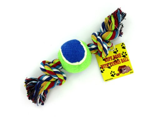 Rope bone dog toy with tennis ball - Case of 24 Review