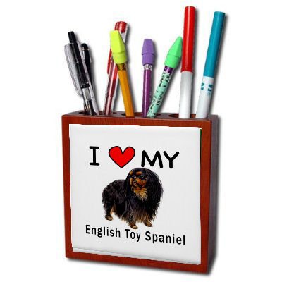 English Toy Spaniel Pencil Holder. Looking for the perfect office gift for someone who owns an English Toy Spaniel? You just found it! I Love My English Toy Spaniel gift is the perfect desk accessory to have in your work or home office. It has 3 slots to store many pencils, pens, markers, and other writing instruments. This English Toy Spaniel pen and pencil holder measures 4.875 inches by 4.875 inches by 1.6875 inches. It is made of fine mahogany wood with a ceramic tile displaying the true love for the English Toy Spaniel mounted flush to the holder. This English Toy Spaniel gift is truly the perfect gift for yourself or someone else!