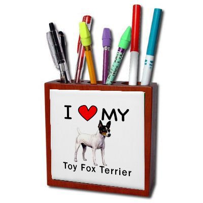 Toy Fox Terrier Pencil Holder. Looking for the perfect office gift for someone who owns a Toy Fox Terrier? You just found it! I Love My Toy Fox Terrier gift is the perfect desk accessory to have in your work or home office. It has 3 slots to store many pencils, pens, markers, and other writing instruments. This Toy Fox Terrier pen and pencil holder measures 4.875 inches by 4.875 inches by 1.6875 inches. It is made of fine mahogany wood with a ceramic tile displaying the true love for the Toy Fox Terrier mounted flush to the holder. This Toy Fox Terrier gift is truly the perfect gift for yourself or someone else!